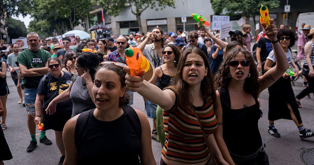 스페인인들, 대량 관광에 반발해 관광객에게 물총 쏴