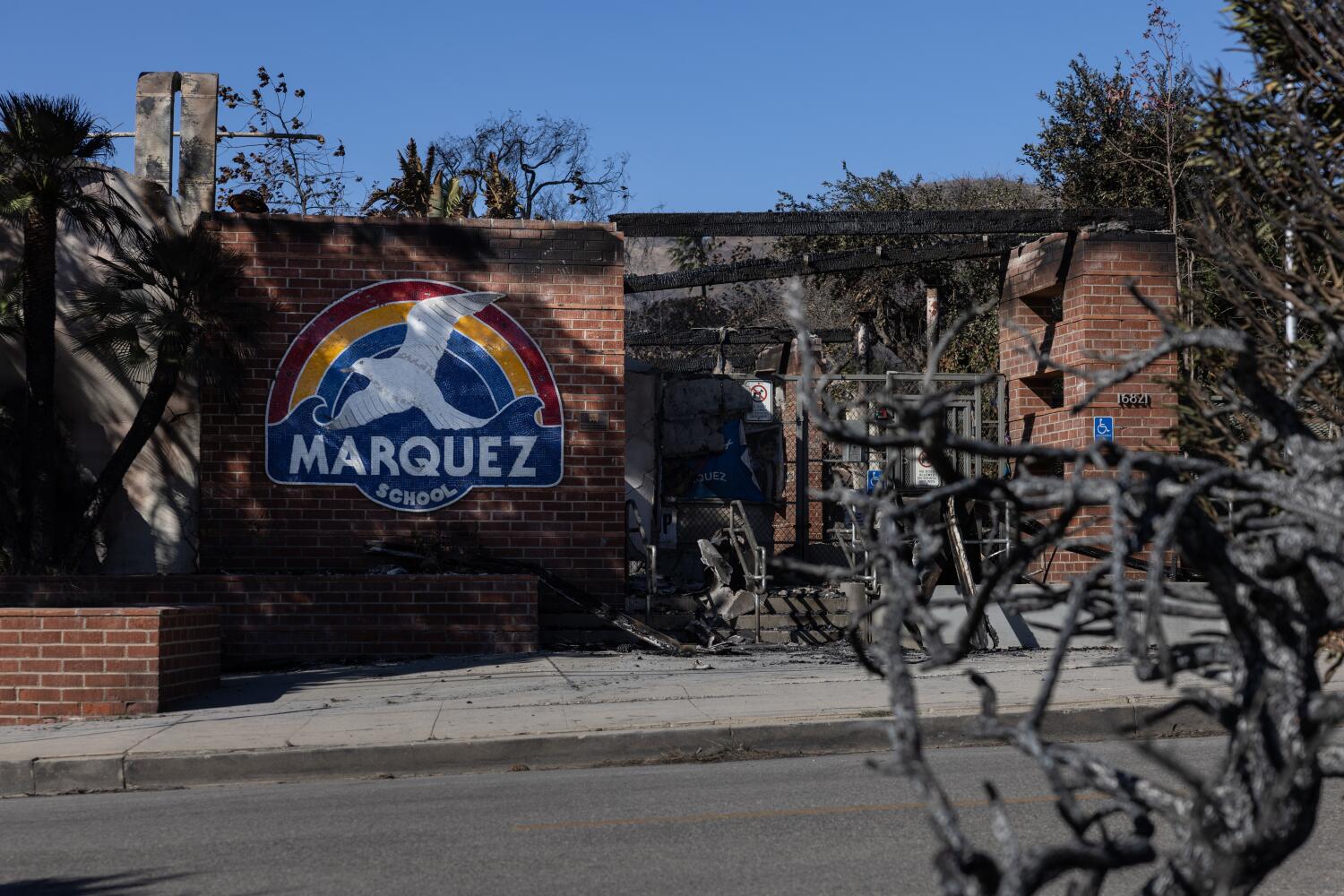 1월에 발생한 팰리세이즈 산불로 Marquez 초등학교가 불에 탄 후, 학생들이 일시적인 배ungalows에 들어가며 영구 건물 공사가 진행 중이다.