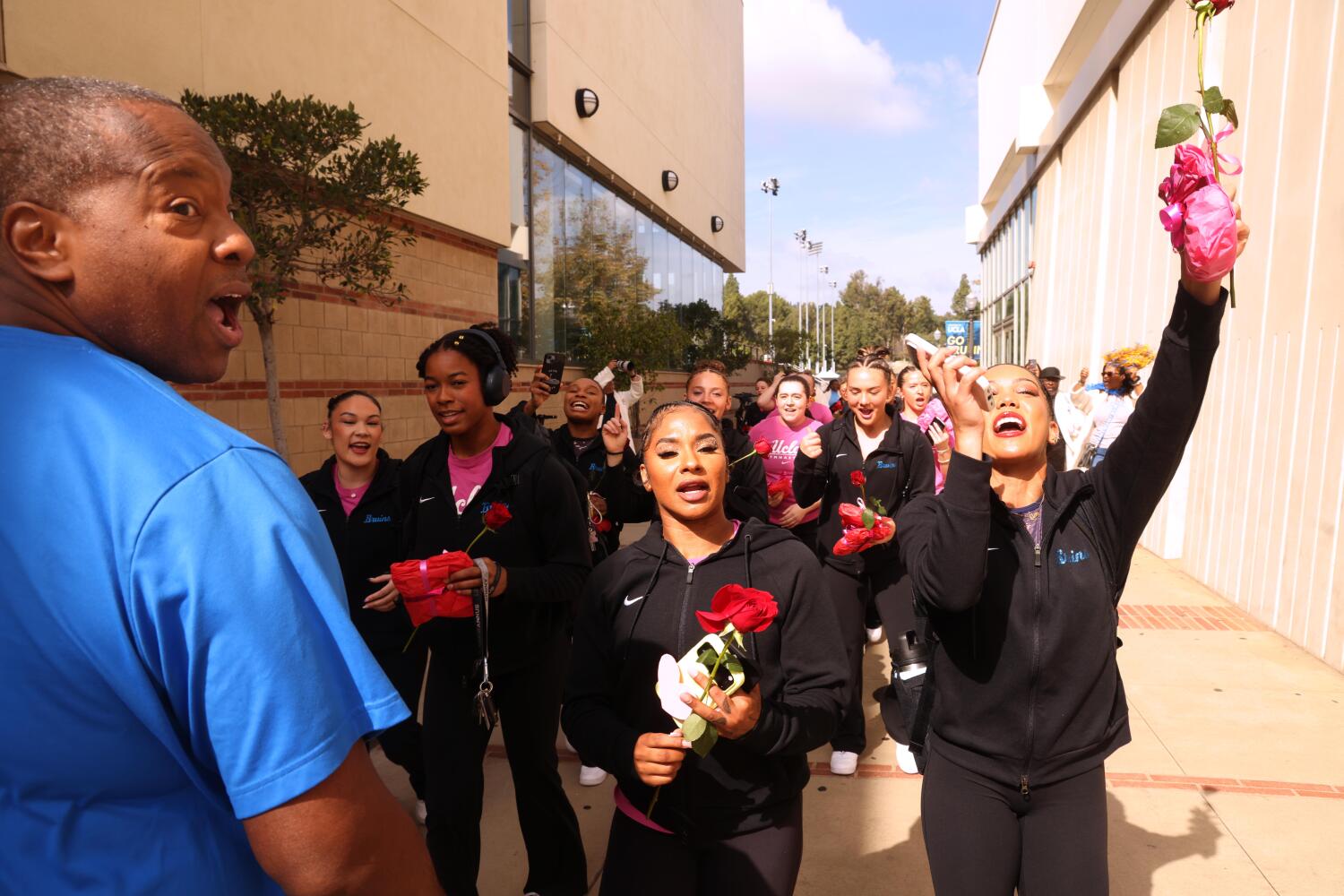 UCLA 체조팀은 미국 선수권 우승을 향해 나아가는 과정에서 팬인 제니퍼와 마이클 리스의 지지를 큰 장점으로 여기고 있다.