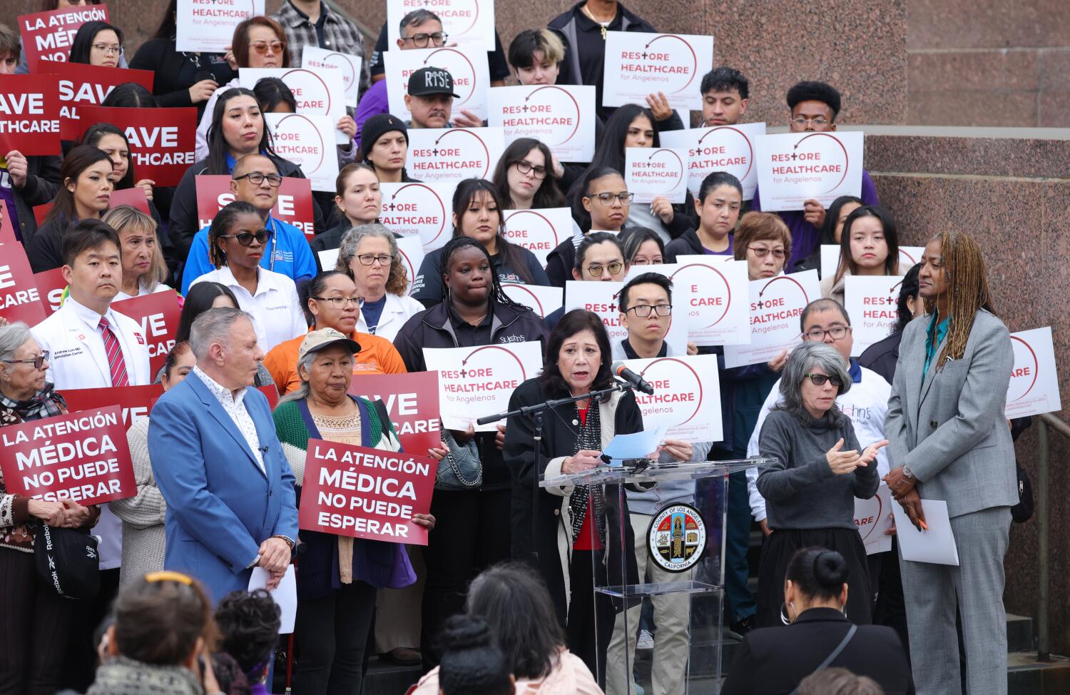 L.A. 카운티 관리자와 의료 당원들이 반 퍼센트의 매출세 인상을 촉구하여 연방 자금 삭감으로 인해 잃게 될 서비스를 보완하려는 중이다.