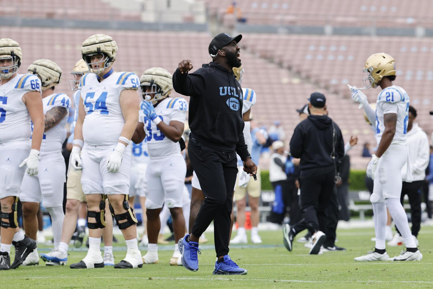 UCLA 축구 팀은 별 트랜스퍼 선수 Nico Iamaleava를 비롯해 55명의 신인들을 영입했다. 코치 DeShaun Foster는 코스타 메사에서의 연습이 팀원들 간 융합을 촉진할 것으로 기대한다.